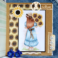 | Beautiful card, lovely colouring, and I love the way the girl is holding the sunflowers. |